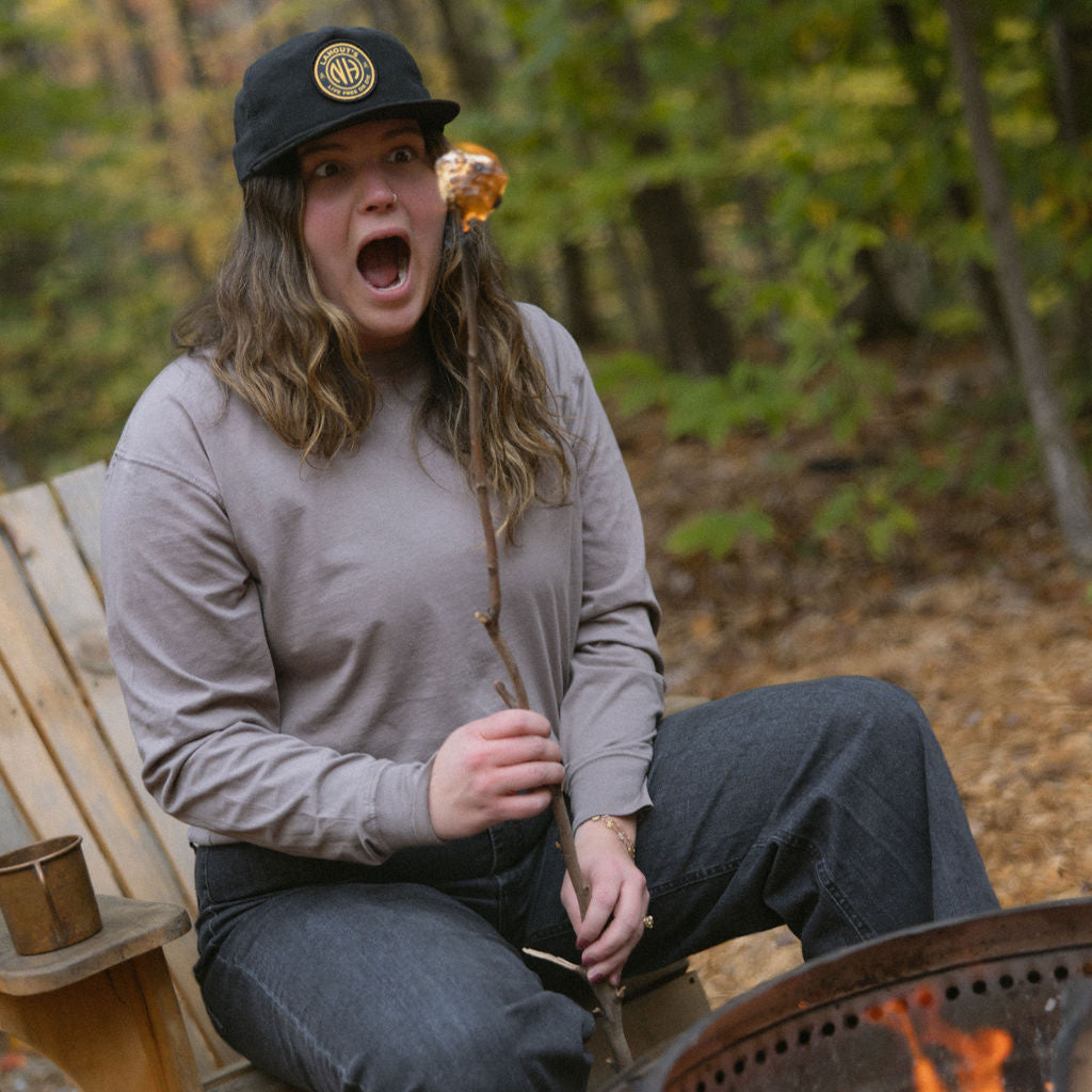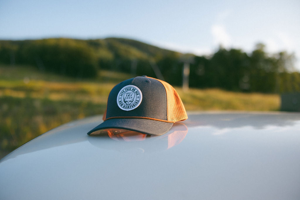 Brims of all kinds. Truckers, flat brims, 5-panels, dad hats, we've got your noggin covered. All logos designed by artists around the White Mountains!